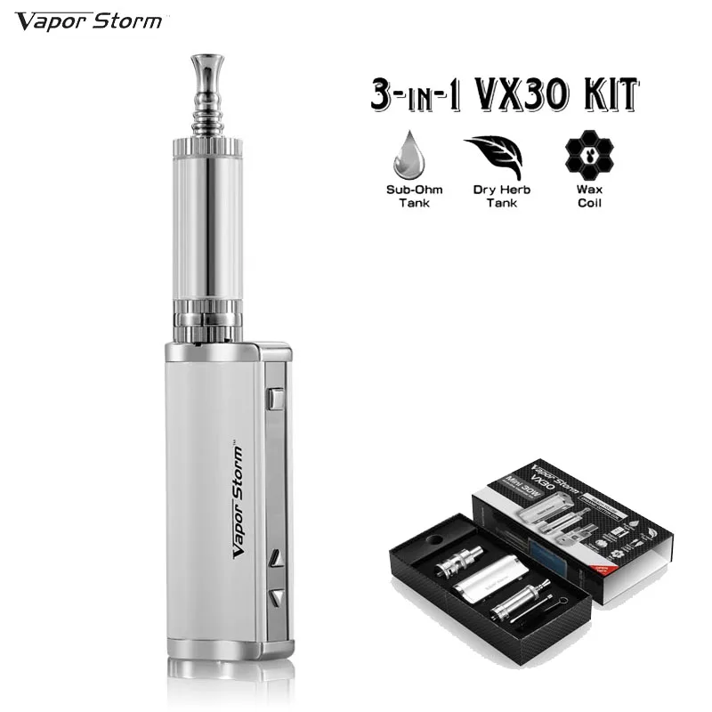 Main Features : Updated Electronic Cigarette Vapor Storm VX30 8.5v/30W 3-in-1 Dry Herb Wax Vaporizer Vape Box Mod kit e-cigarettes e shisha pen